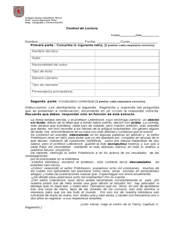 Control De Lectura Viaje Al Centro De La Tierra Lectura Proceso Idiomas Maleta De Viaje En Ingles